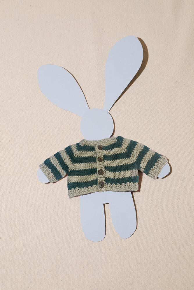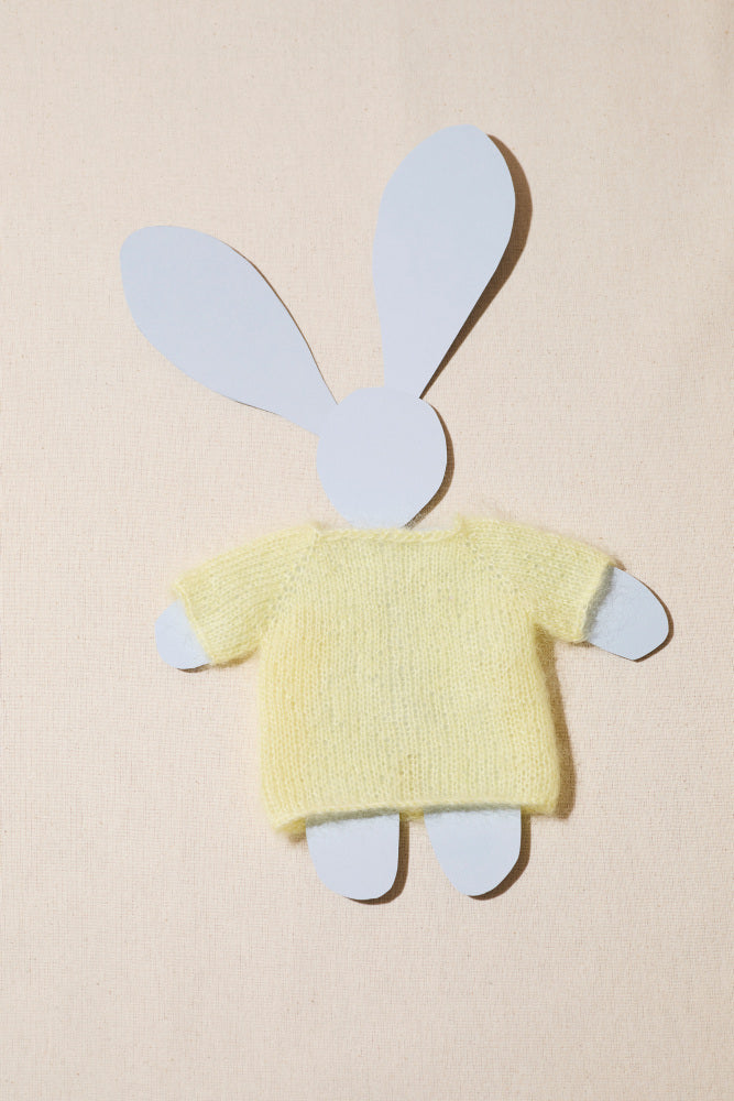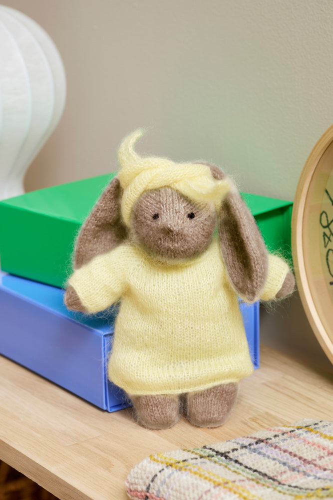 Garnkvaliteterne og farverne, der er brugt til harepus og alt tøjet, er angivet nedenfor. Man vælger selv, om man vil have garnet til alle beklædningsdelene.