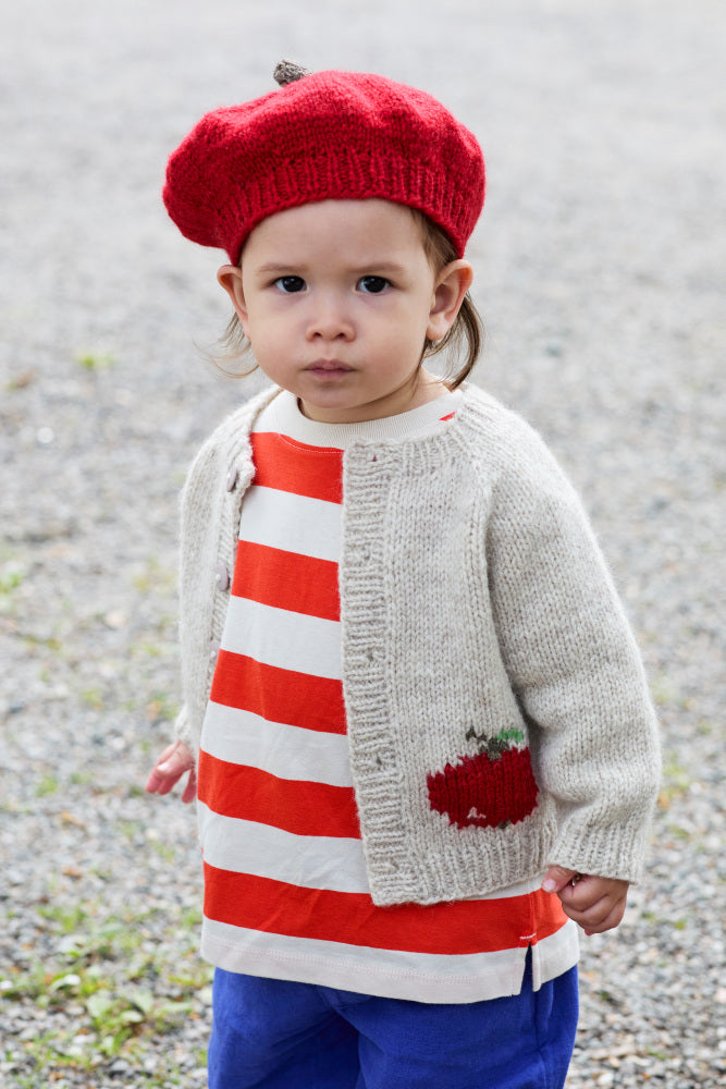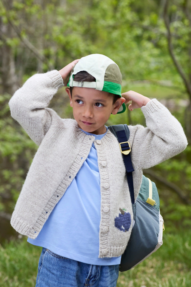 En sød og enkel børnejakke med et frisk æblemotiv på brystet – perfekt som hverdagsfavorit med et strejf af legende charme.