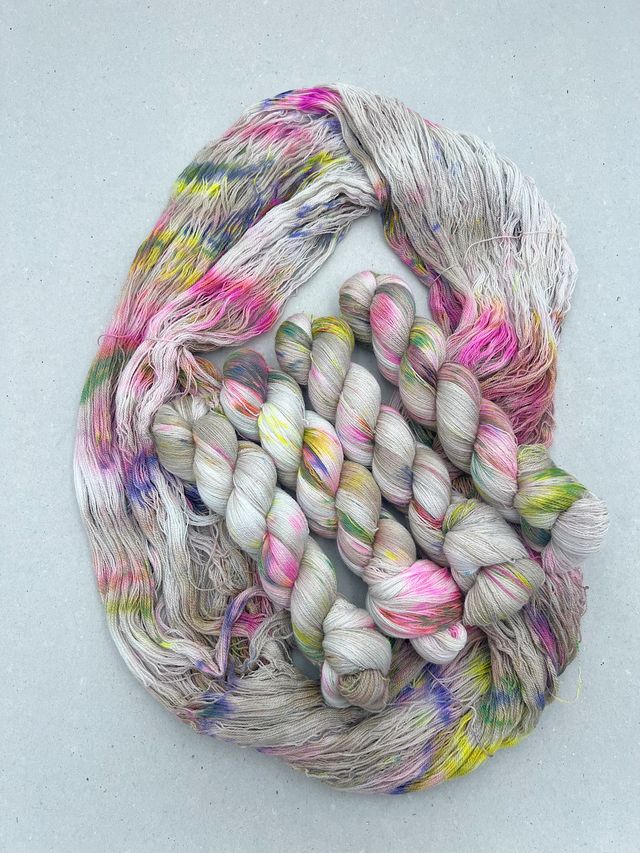 Hvert fed Angel Lace er håndfarvet af Thelma Steimann, hvilket gør hver eneste farve unik. Kvaliteten bruges ofte som følgetråd for at give strikketøjet et håndfarvet og personligt præg. Prøv at kombinere den med silk mohair, bomuld eller pladegarn – mulighederne er uendelige. Den er også meget populær som gave, da den kan bruges på utallige kreative måder.