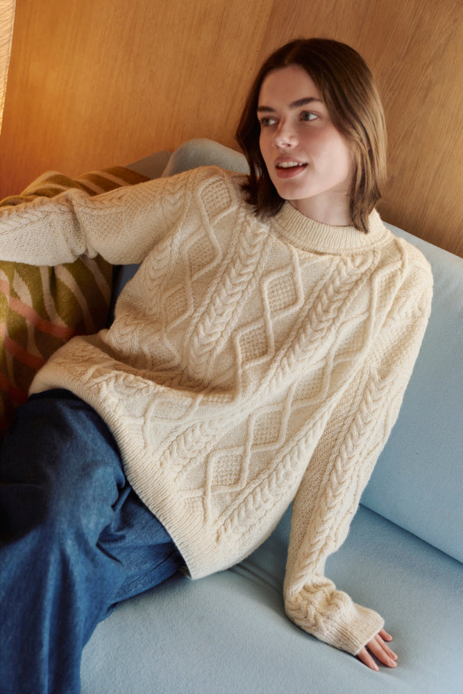 Med dette strikkekit får du alt, hvad du skal bruge for at strikke 493 Sølve Arangenser til Dame – en klassisk og tidløs flettegenser med smukke strukturer og gennemtænkte detaljer. Genseren har en lige og rummelig pasform med rette skuldre og rund hals og er skabt til at blive en fast klassiker i garderoben.