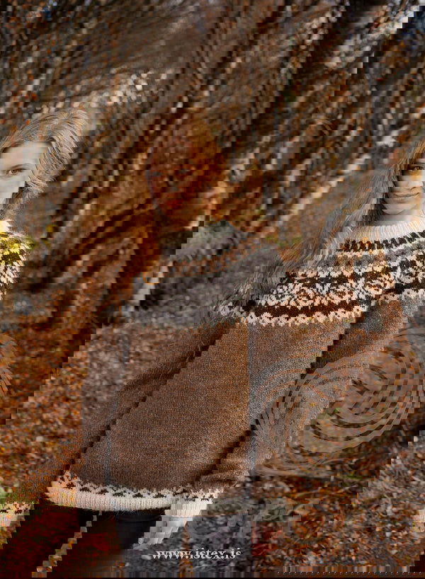 Afmæli (40-14) er en af de mest populære islandske sweatre. Opskriften indeholder fire forskellige modeller: tre til voksne (brun, blå og sort sweater) og to til børn (grå og grøn sweater). Alle strikkes i Léttlopi (50 g nøgler) fra Ístex – entrådet, let og varm islandsk uld, der giver det autentiske islandske udtryk.