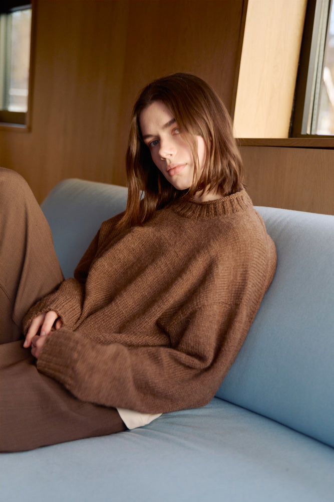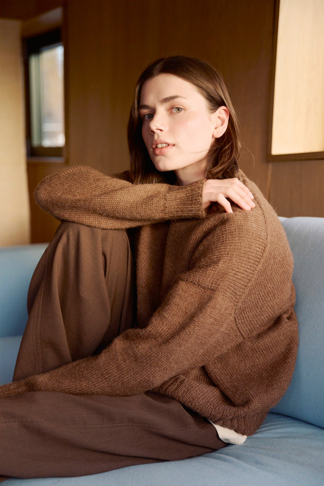 Rauma Mitu er et blødt og lækkert garn i uld og alpaka, som giver genseren et let, varmt og eksklusivt udtryk – perfekt til forår og kølige sommerdage.