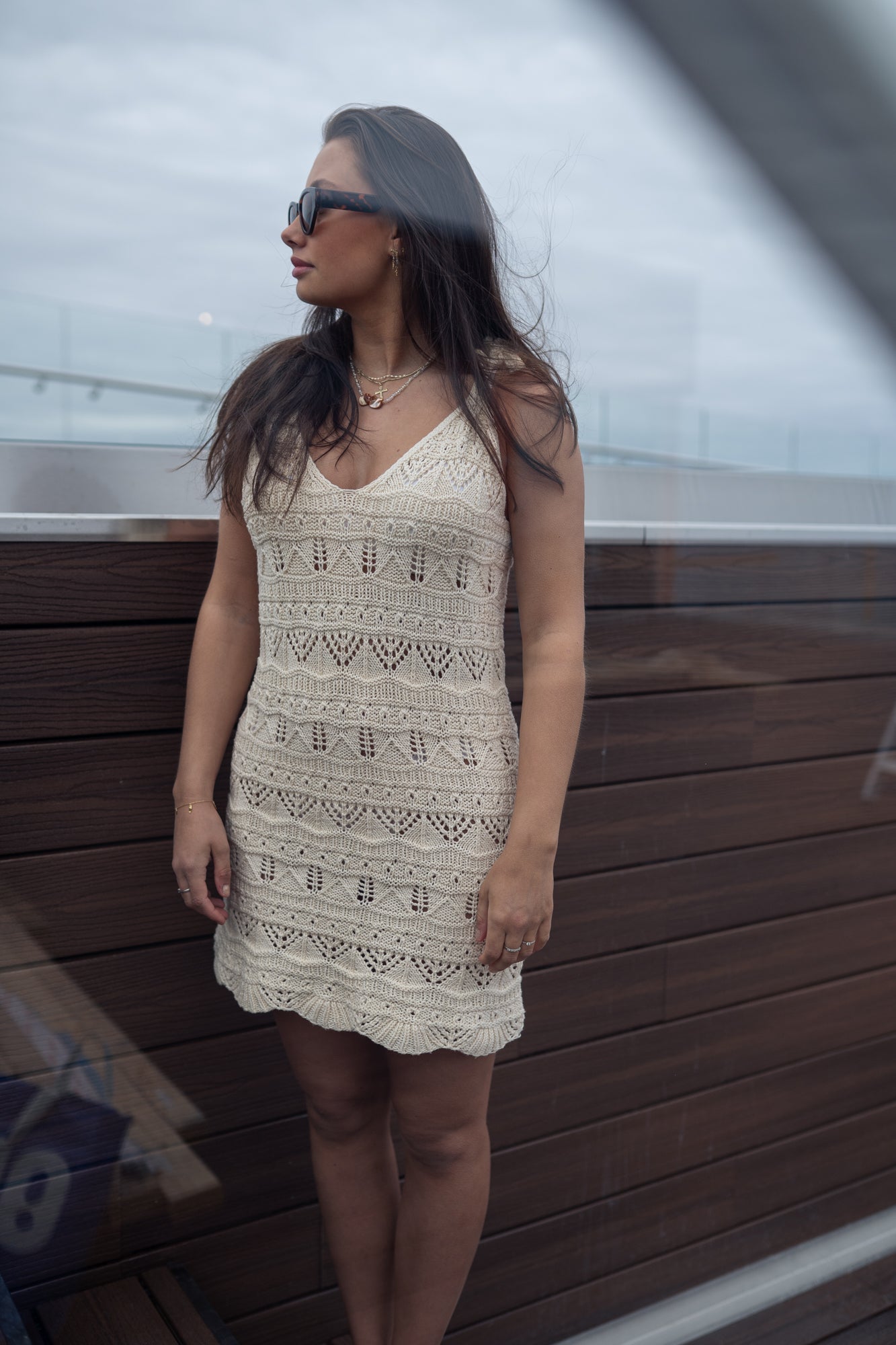 Kjolen er lige så flot alene som over skjorte med blonder eller t-shirt. På billedet er kjolen i farven «Popcorn» Cuddle Me cotton str M.
