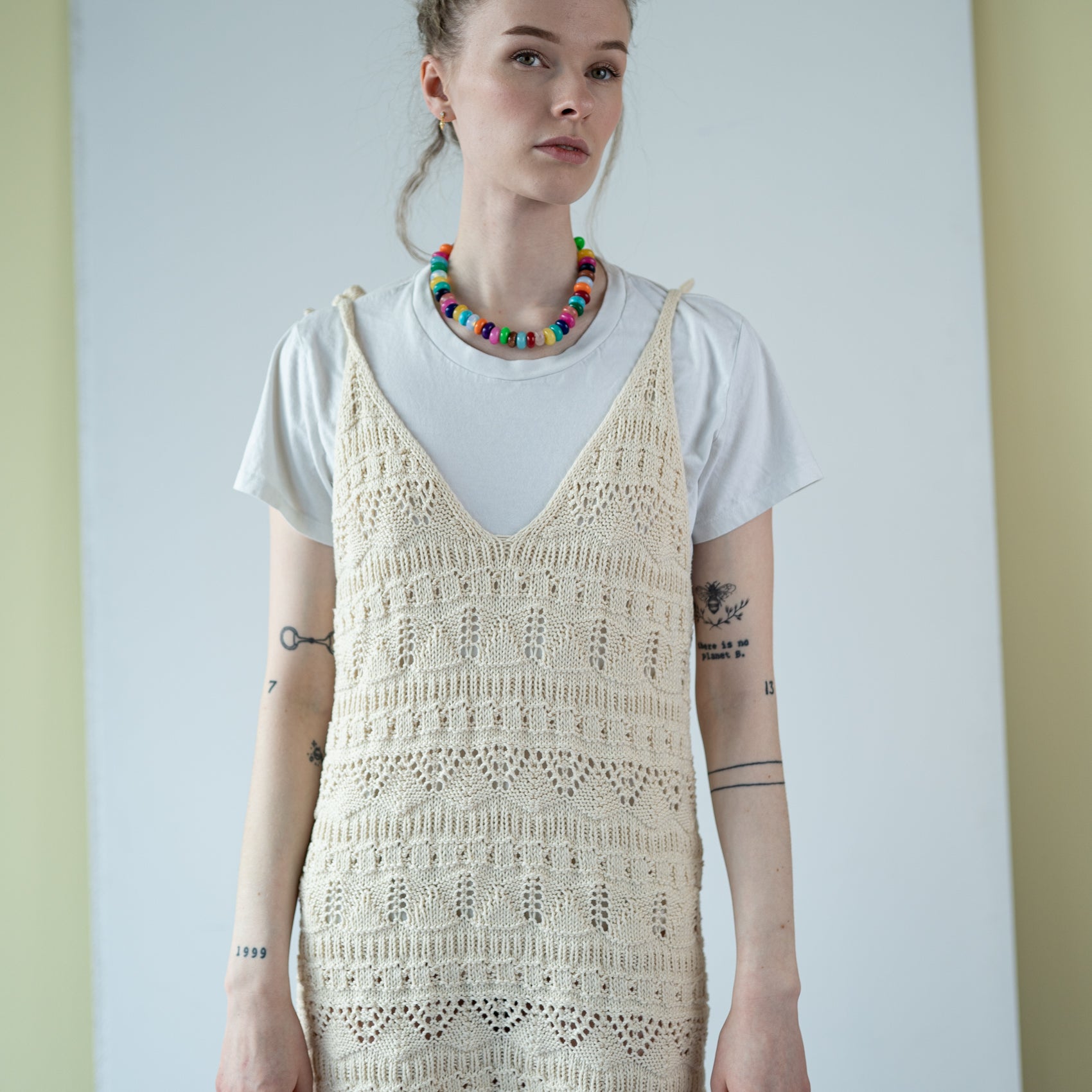 Skøn kjole strikket i Cuddle me cotton – kan strikkes til dame og større børn. Kjolen strikkes nedefra og op i strukturmønster.