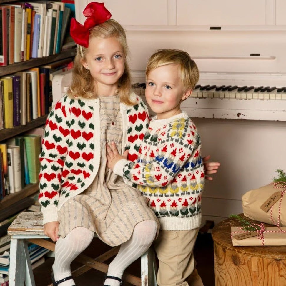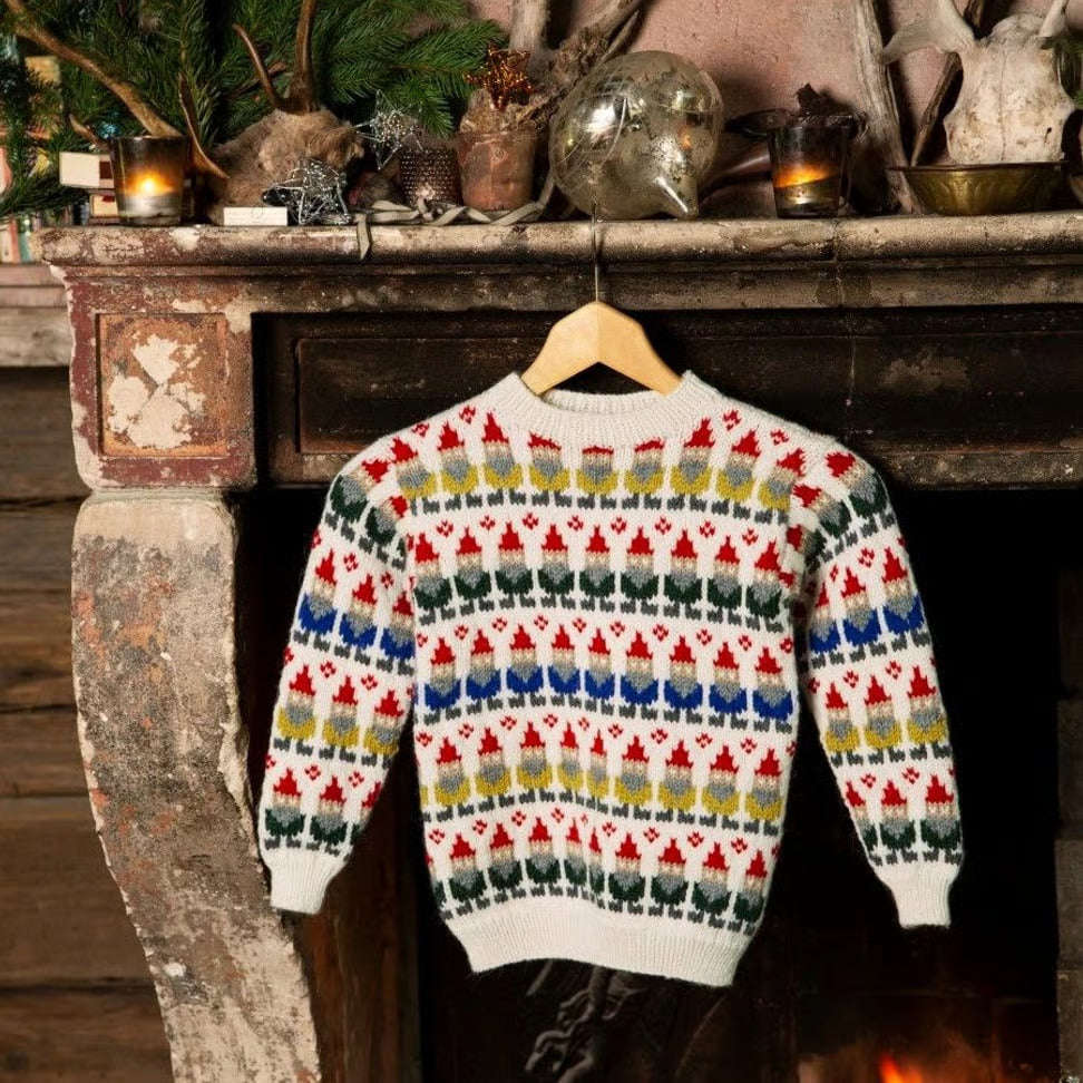 ulenissegenseren er en festlig julesweater til børn – strikket i Rauma Mitu i smukke, klassiske julefarver. Sweateren har sjove mønstre og et tidløst design, der bringer julestemning frem år efter år. Perfekt til julefester, kalenderåbning og hyggelige vinterdage.