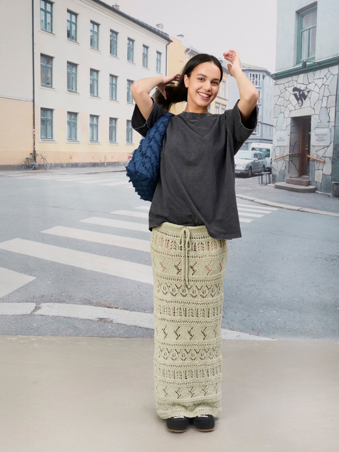 Skørtet strikkes i Pandora – et blødt og glansfuldt garn i 100 % bomuld, som giver flot struktur og behagelig komfort.