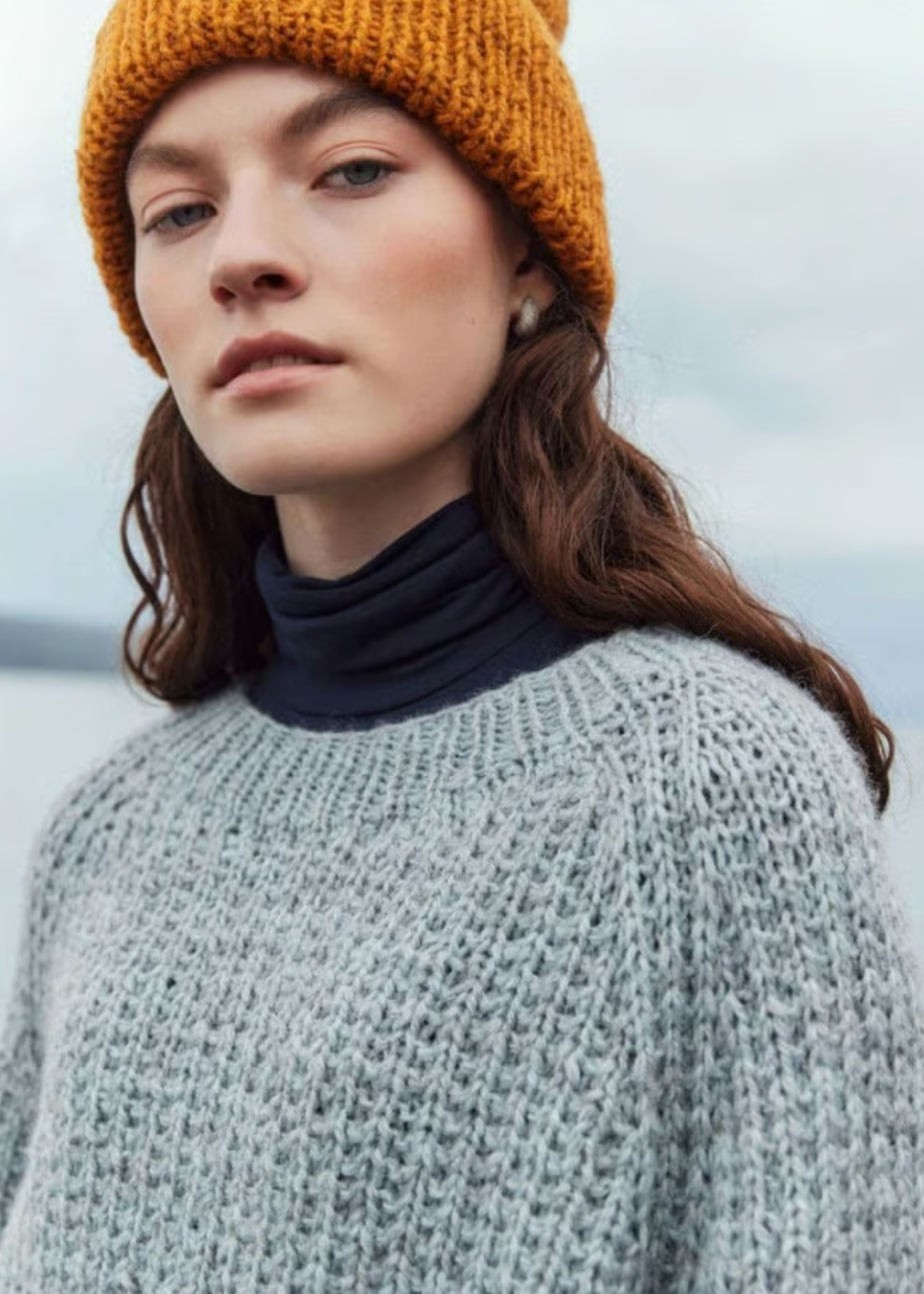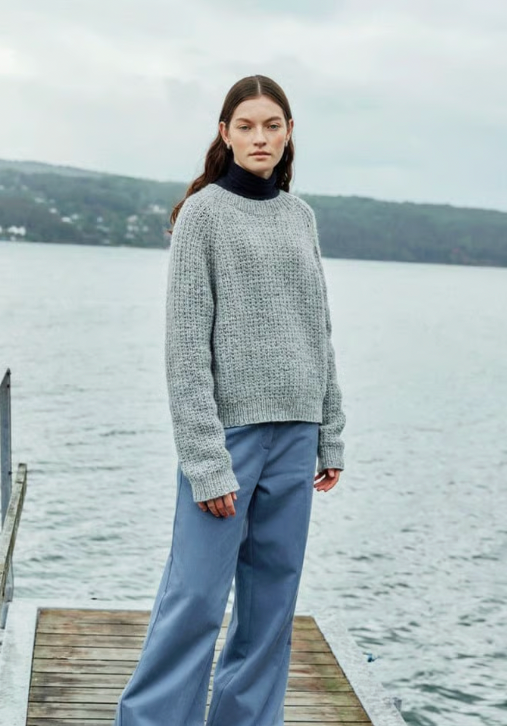 Pekka Struktursweater Dame er en smuk og klassisk raglansweater i perleribb med ribstrikkede kanter. Perleribb er et enkelt, men effektfuldt strukturmønster af rette og vrange masker, som giver sweateren et elegant og levende udtryk. Modellen har en lige og rummelig pasform med rund hals og bred raglan, hvilket gør den både tidløs og behagelig at have på.