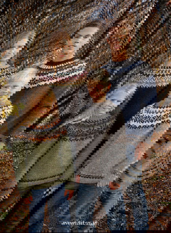 Kittet indeholder den trykte opskrift samt den nødvendige mængde Léttlopi til den brune sweater. Du kan også vælge andre farver blandt hele sortimentet, hvis du vil skabe dit eget personlige udtryk. Opskriften sælges ikke separat, men kun sammen med garnet.