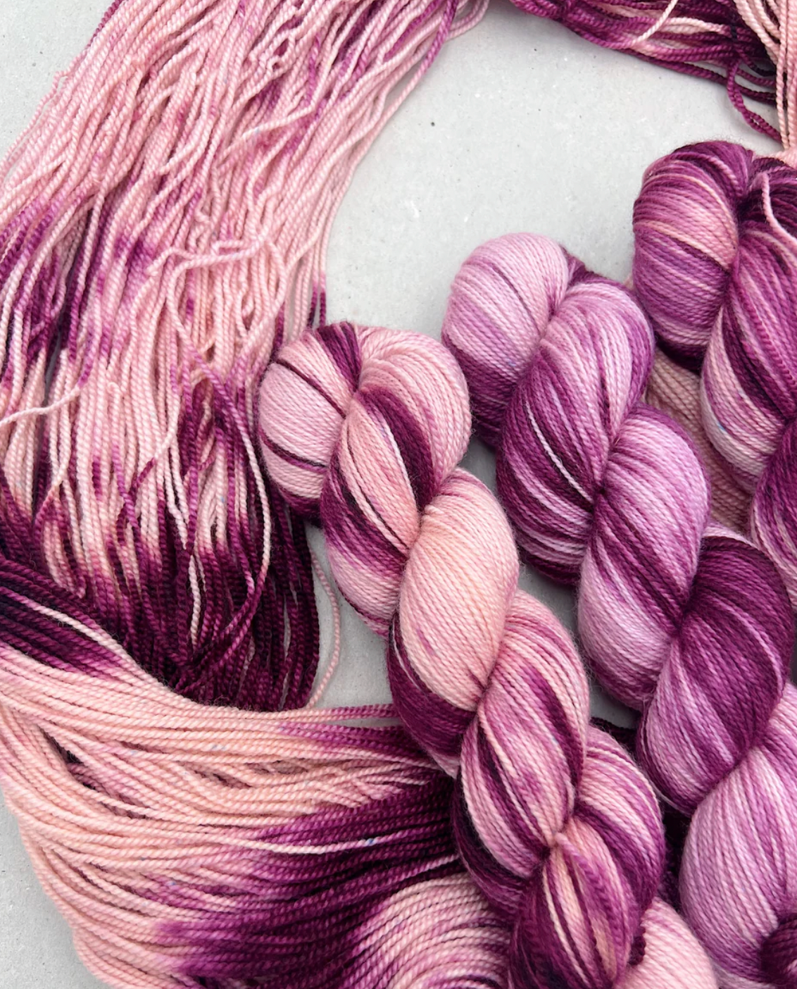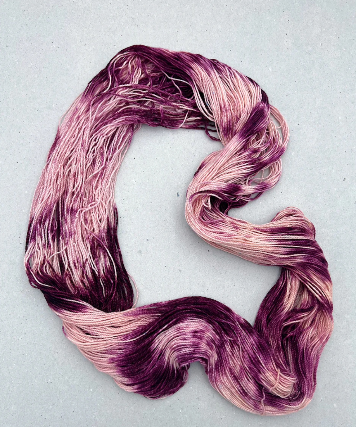Da garnet er håndfarvet er intet fed ens, selvom garnet kommer fra samme indfarvning. Hvis du fortrækker et mere ensartet resultat anbefaler vi at du strikker striber af af de forskellige fed.