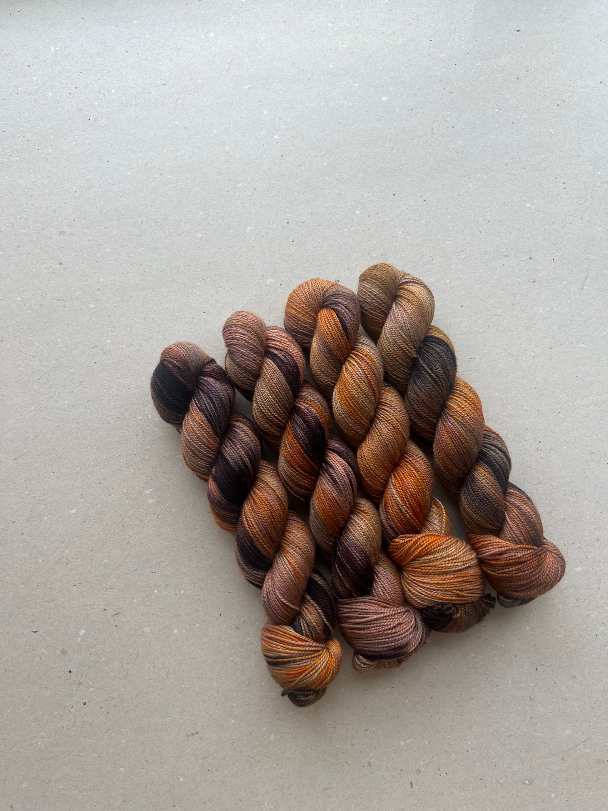 Da garnet er håndfarvet er intet fed ens, selvom garnet kommer fra samme indfarvning. Hvis du fortrækker et mere ensartet resultat anbefaler vi at du strikker striber af af de forskellige fed.
